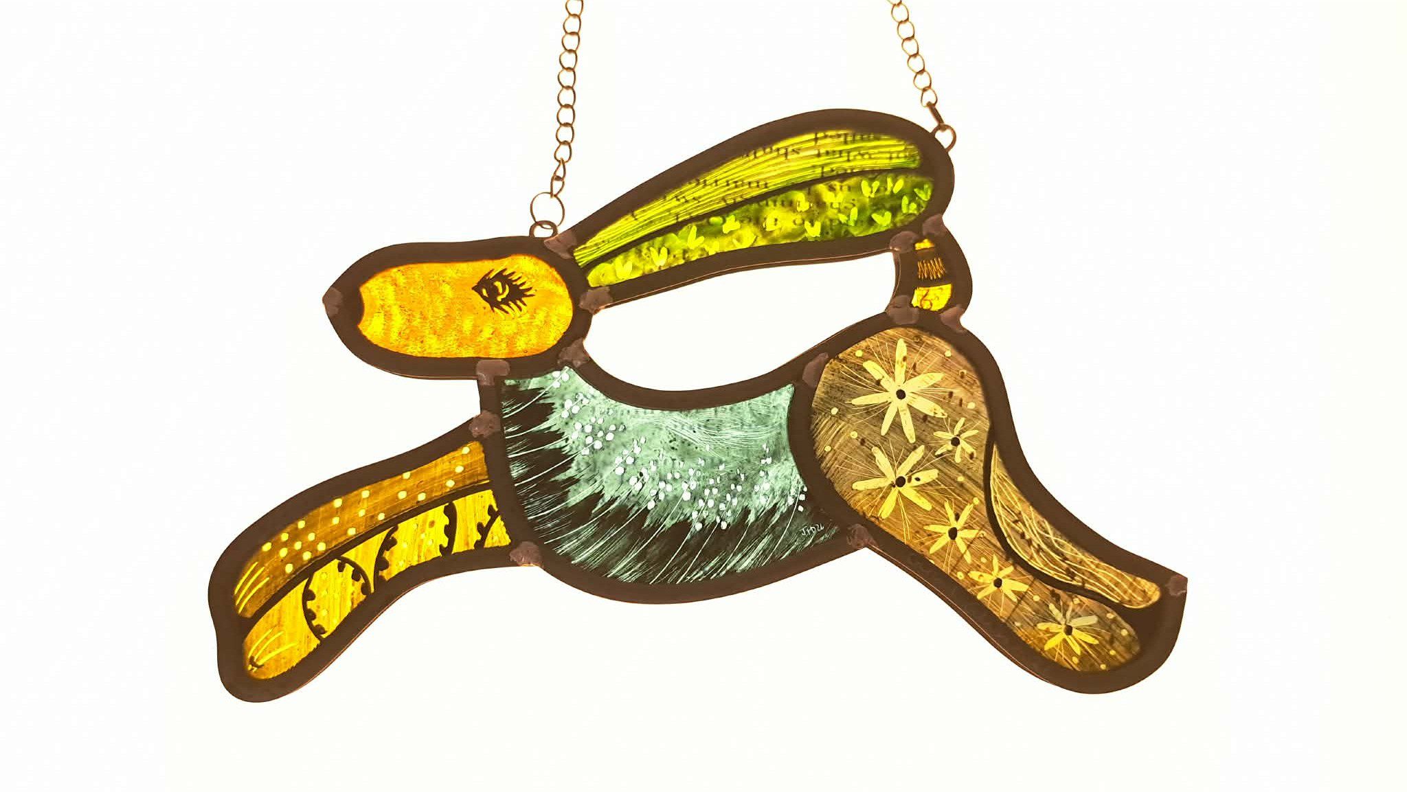 Meet Henry – a joyful stained glass piece designed to bring colour and character to any space.